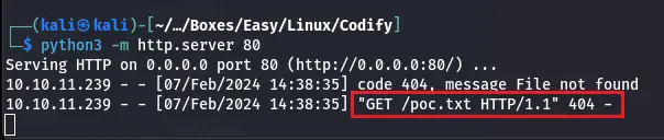 Tout d’abord, assurons-nous qu’il fonctionne, nous pouvons lancer un serveur local sur notre machine fonctionnant sur le port 80, puis nous utilisons le PoC pour essayer d’exécuter une requête vers nous à l’aide d’une commande curl