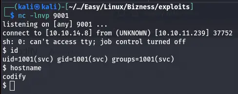 Et nous obtenons notre shell sur la cible :