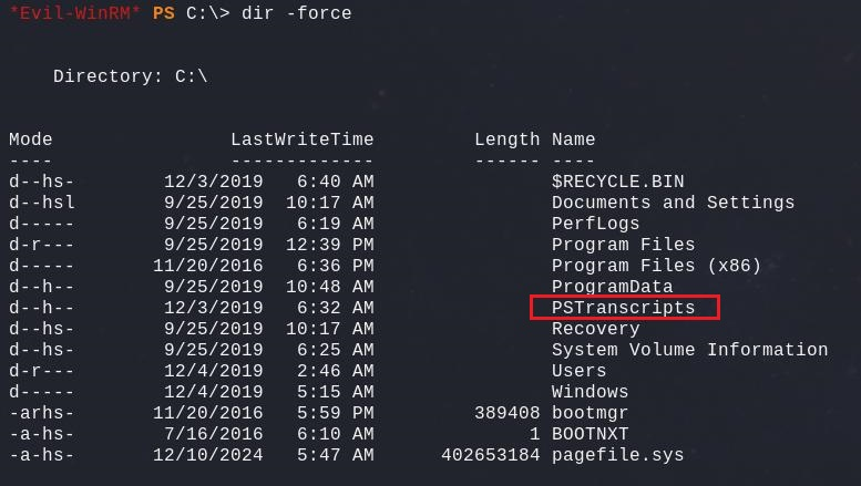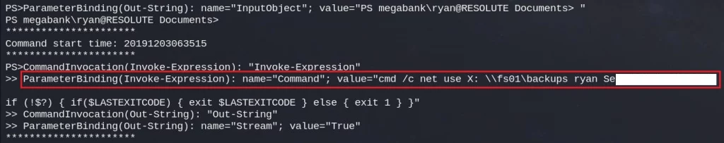 Le compte ne dispose pas de droits ou privilèges spécifiques que nous pourrions exploiter pour obtenir davantage d’accès. Peu importe, lors de notre énumération sur la machine, nous avons trouvé un fichier dans un répertoire caché ayant un historique de commandes Powershell.